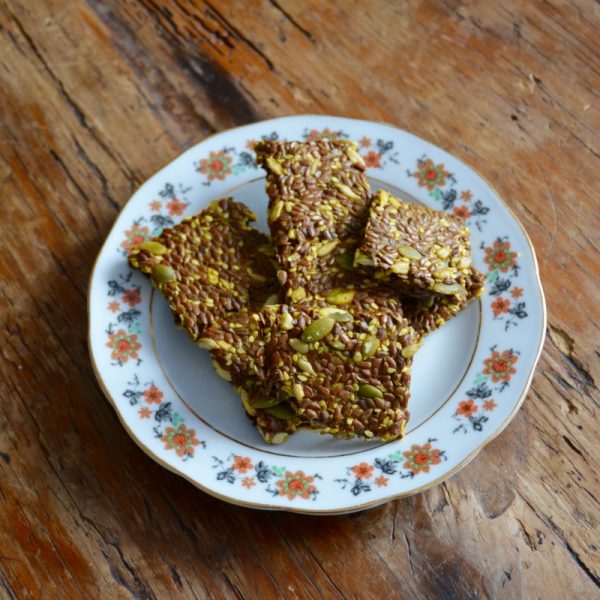 Flaxseed crackers are an alternative to regular wheat crackers, only so much better. Packed with omega 3 essential fatty acids that we need to consume through our diet, these are also high in vitamins and minerals found in the sesame seeds, peptia seeds and sunflower seeds.